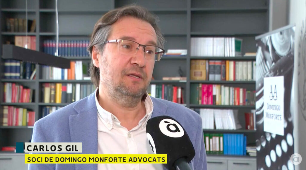 El socio Carles Gil Gimeno de DOMINGO MONFORTE Abogados Asociados, y experto en Derecho Penal, ha intevenido hoy en el Informatiu Migdia de À Punt.