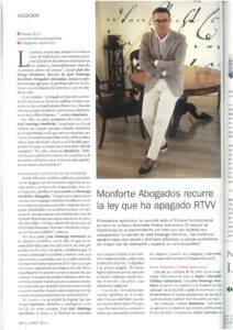 El despacho de José Domingo Monforte recurre la ley que ha apagado RTVV. Eco3. Junio [...]