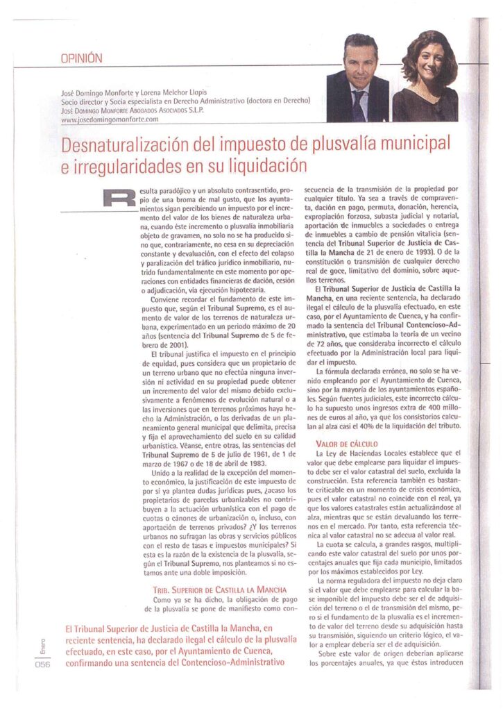 El Tribunal Superior de Justicia de Castilla la Mancha en una reciente sentencia ha declarado ilegal el cálculo de la plusvalía efectuado, en este caso, por el Ayuntamiento de Cuenca y ha confirmado la Sentencia del Tribunal Contencioso-Administrativo que estimaba la teoría de un vecino de 72 años que consideraba incorrecto el cálculo efectuado por la Administración local para liquidar el impuesto.
