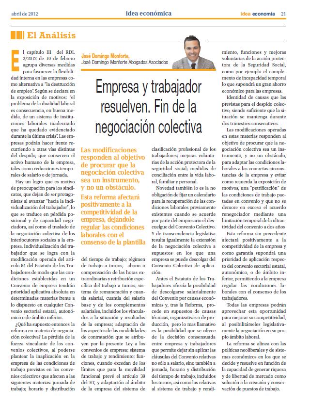 Esta reforma afectará positivamente a la competitividad de la empresa, dejándole regular las condiciones laborales con el consenso de la plantilla.