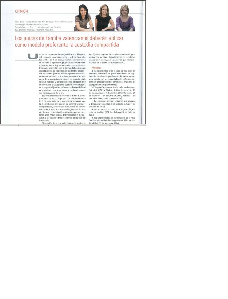 Estamos convencidos de que el Tribunal Constitucional ha hecho algo más que el levantamiento de la suspensión de la vigencia de la norma hasta la resolución del recurso de inconstitucionalidad planteado, pues coloca a los Jueces de Familia valencianos ante una realidad legislativa de plena, directa e inesquivable aplicación que les establece unas reglas claras, determinantes e inequívocas a la hora de decidir sobre la atribución de la custodia.