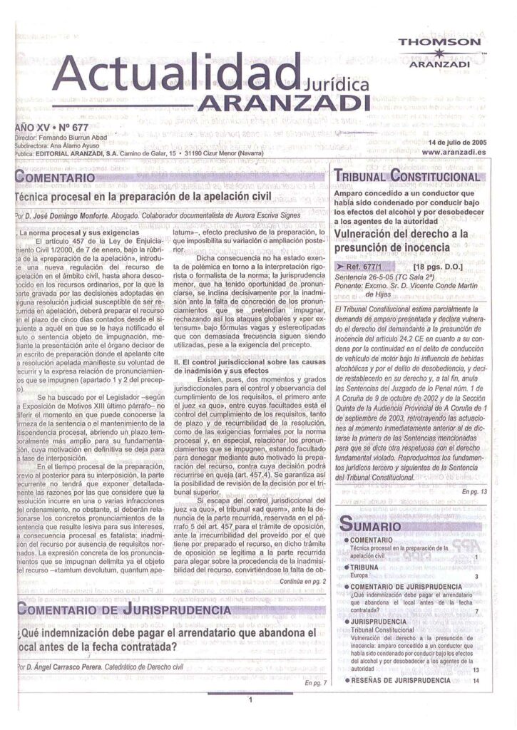 Aranzadi (Julio 2005). Aurora Escrivá Signes y Jose Domingo Monforte , director de Domingo Monforte Abogados Asociados. Abogados especializados en Derecho Civil y Patrimonial. Despacho en Valencia.