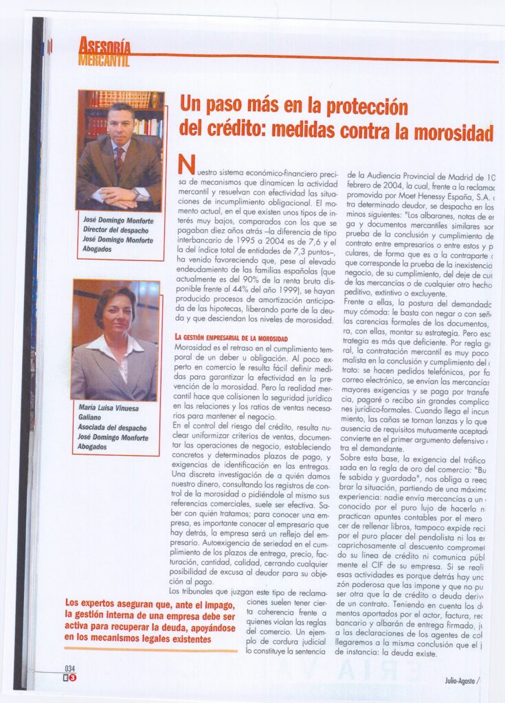El pasado 31 de diciembre de 2004 entró en vigor la ley 3/2004, de 29 de diciembre, por la que se establecen medidas de lucha contra la morosidad en las operaciones comerciales, que incorpora al derecho interno la Directiva 2000/35/CE, del Parlamento Europeo y del Consejo, de 29 de junio de 2000. Conviene recordar, que como antecedente de la Ley se encuentra la comunicación oficial del Tribunal Europeo de Justicia, de abrir un proceso contra España en fecha 16 de Septiembre de 2.004, por ser el único Estado de los 25 que conforman la Unión que no había traspuesto la mencionada Directiva, cuyo plazo se agotó en Agosto de 2.002.