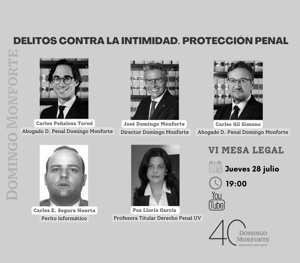 En esta ocasión desde el Área Penal celebraremos nuestra Mesa Legal titulada  «Delitos contra la intimidad. Protección Penal»